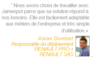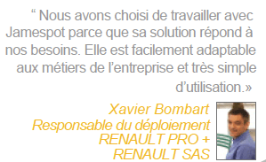 Aujourd’hui, la solution basée sur Jamespot a permis de déployer, pour chaque pays, des espaces ouverts aux forces de vente, aux équipes des filiales commerciales et aux carrossiers agréés afin d’échanger (Q&A, forum), de publier ( articles, pages web, vidéos) ou plus simplement de collaborer (agenda, événements, banque documentaire), le tout intégrant un module de traduction instantanée.