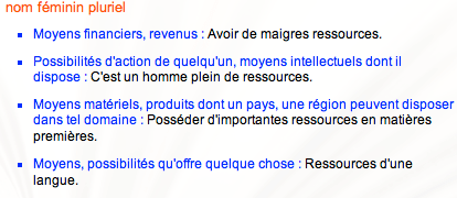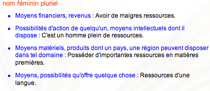 C’est le cas de ressource dont la définition selon le Larousse est :