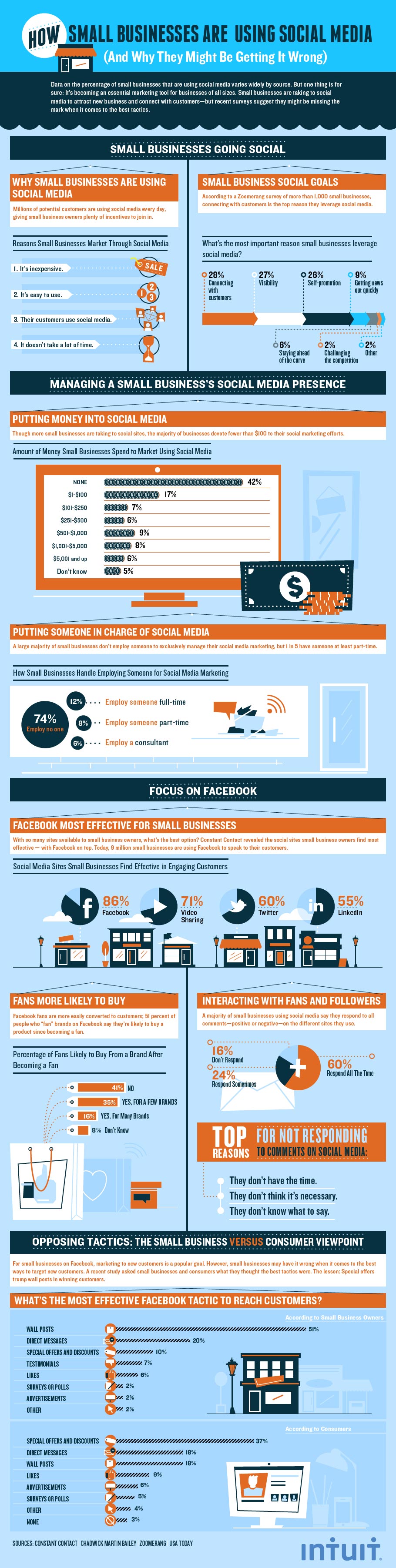 Les différentes « études » à propos de petites et moyennes entreprises et des médias sociaux (cf. l’infographie ci-dessous) mettent en avant les avantages d’une présence sur ces réseaux dont principalement le « faible coût » et la possibilité de renforcer les relations dans son écosystème et notamment avec ses clients.
